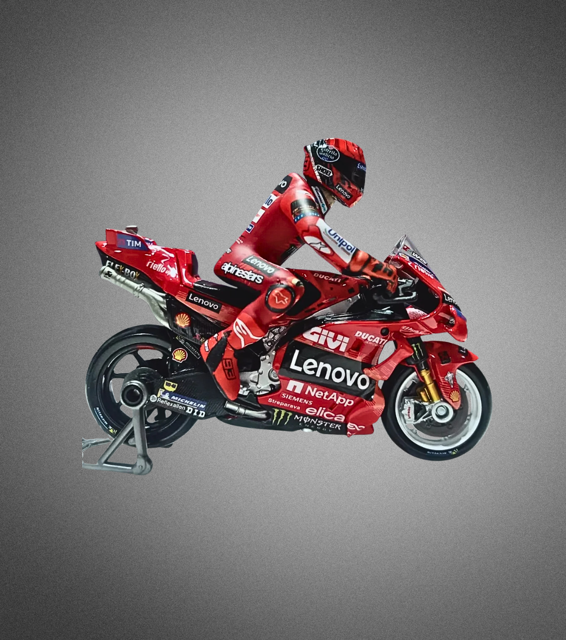 Precise replica of the 2025 Ducati Desmo GP25 with official Ducati Lenovo Team livery.