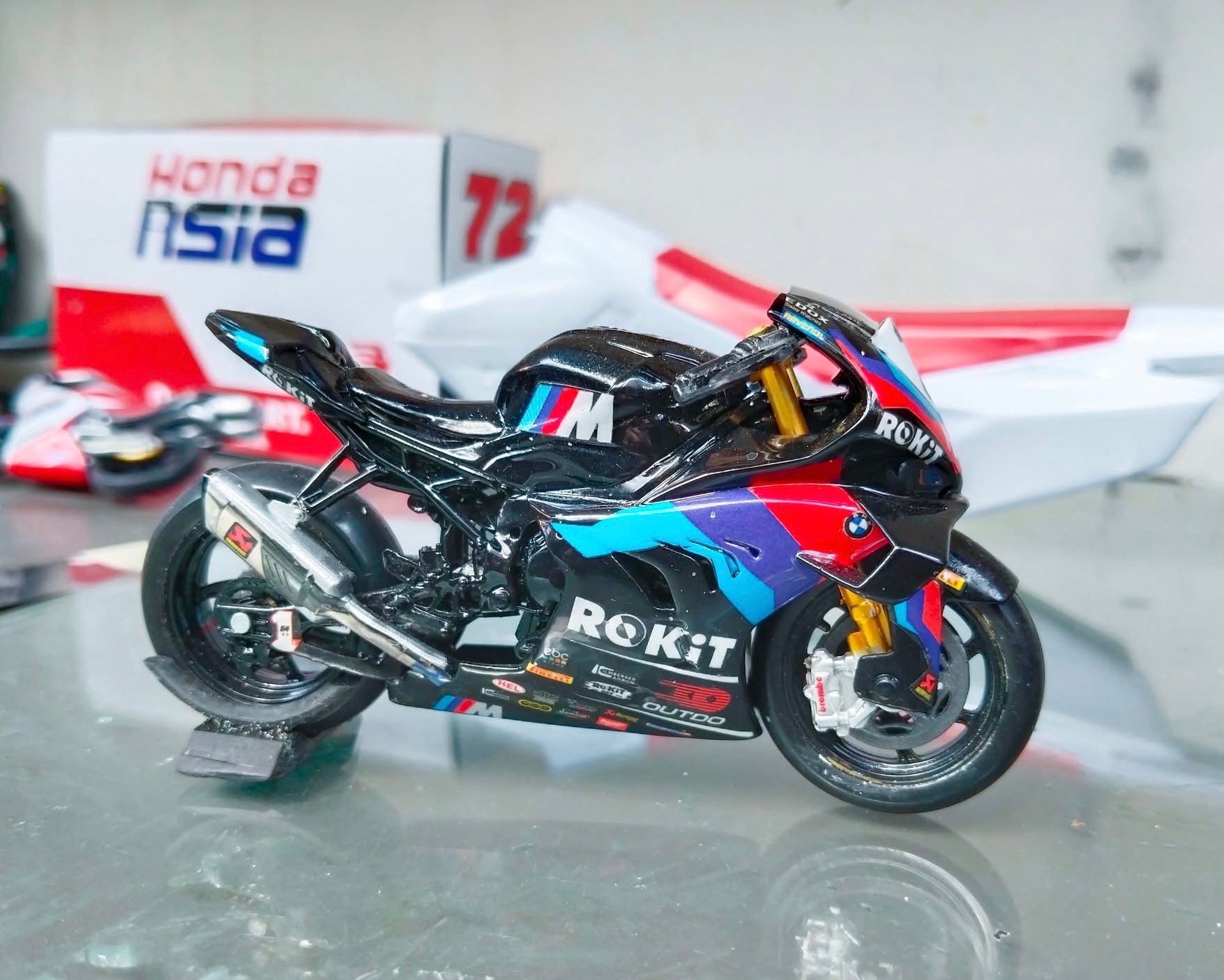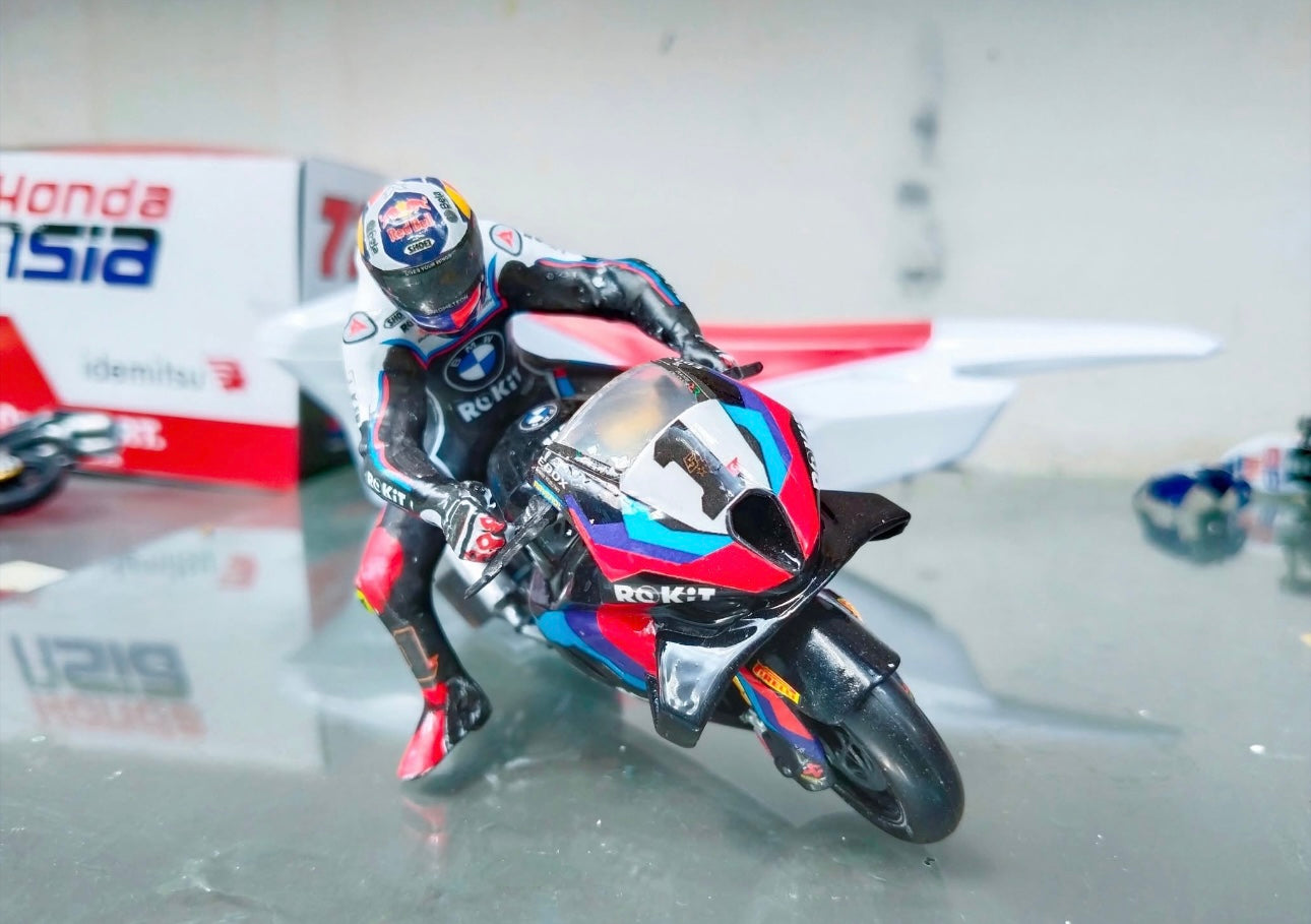 Brand : Kilo Works Sclae 1/12 Marc Marquez Detailed Diecast 100% Material: Die-cast Metal with plastic parts Packaging: Full-color Window Box Function: ●Front wheel and handlebar can swing from side...